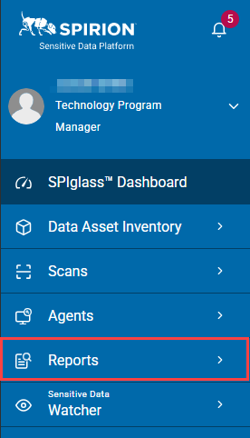 - From the left side navigation menu in Spirion Sensitive Data Platform, click Reports.