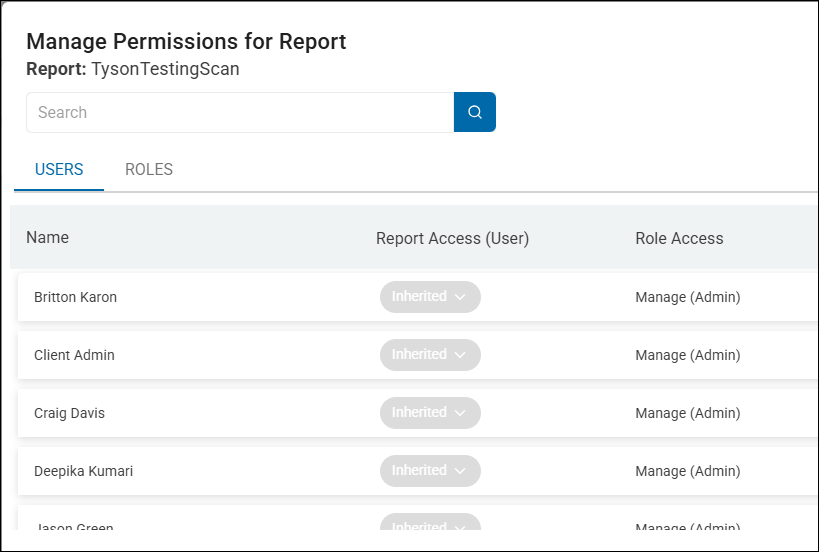 - Manage Permissions - Set access to the report by user or user role as follows: