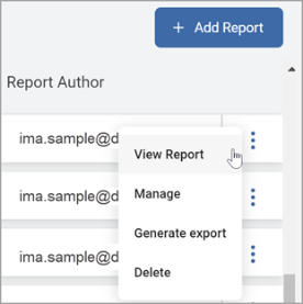 - Generate report - Initiates the report export process. This can take several minutes. When the report is complete: