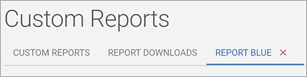 - The CUSTOM REPORTS tab is shown, by default, and shows the custom reports that have been created, in a table with the following columns:
