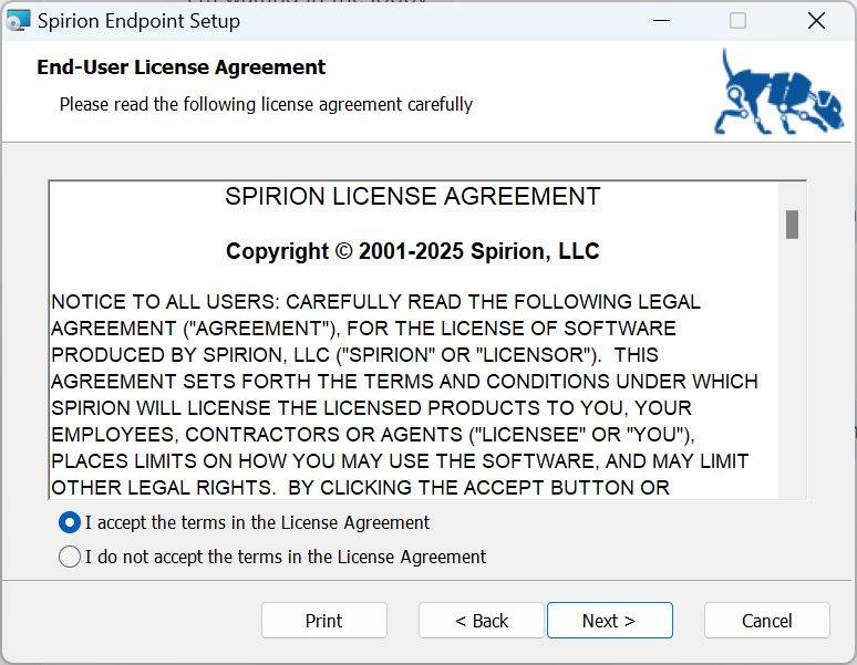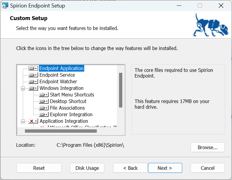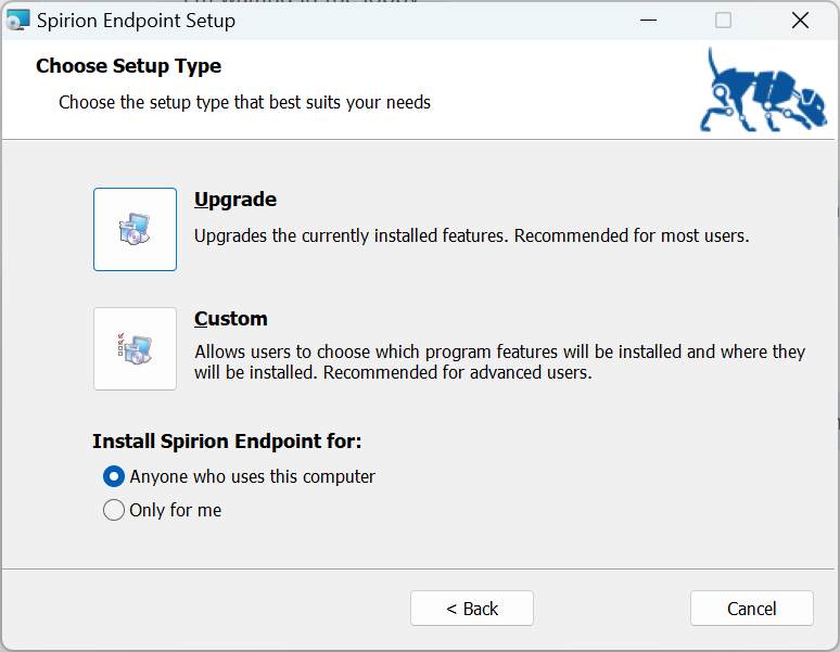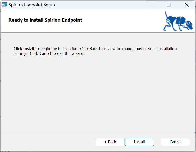 - To change the way features are installed, repair errors in the installation by fixing missing or corrupt files, shortcuts, and registry entries, or to remove Spirion Endpoint version 13.6, re-launch the setup wizard and follow the appropriate prompts in the wizard.