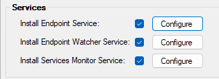 NOTE: archTIS strongly recommends you DO NOT alter services unless archTIS Spirion Professional Services or Support instructs you to. Altering services could lead to non-performing Agents. All services must be included in the MSI unless instructed by archTIS Spirion otherwise. - Install Endpoint Service: Specify whether the Identity Finder Endpoint Service should be installed. (When using the client with the enterprise console, this box must be checked or communication with the console will fail.)