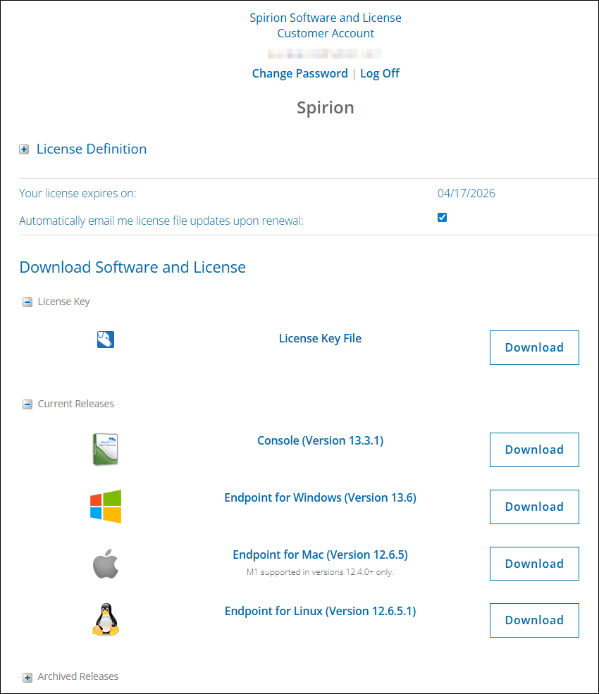 - Download the latest version of Spirion Sensitive Data Platform client (such as "Endpoint for Windows") from your Spirion Software and License site.