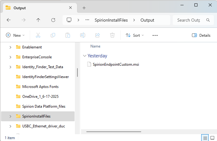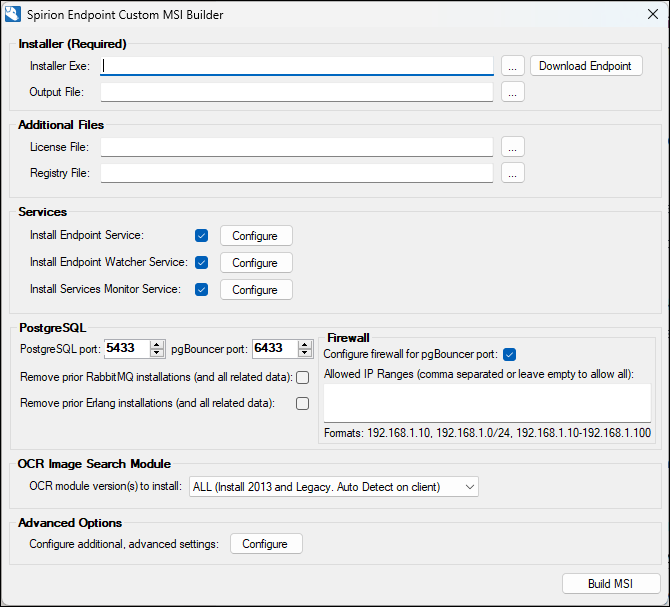 - The "Spirion Endpoint Custom MSI Builder" application opens.