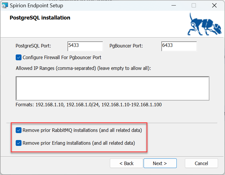 - Spirion Endpoint version 13.6 requires PostgreSQL as it replaces RabbitMQ