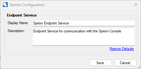 - Description: Specify the description of the service that appears as the "Description" in the Services Control Manager. This description is shown in the "Description" column.