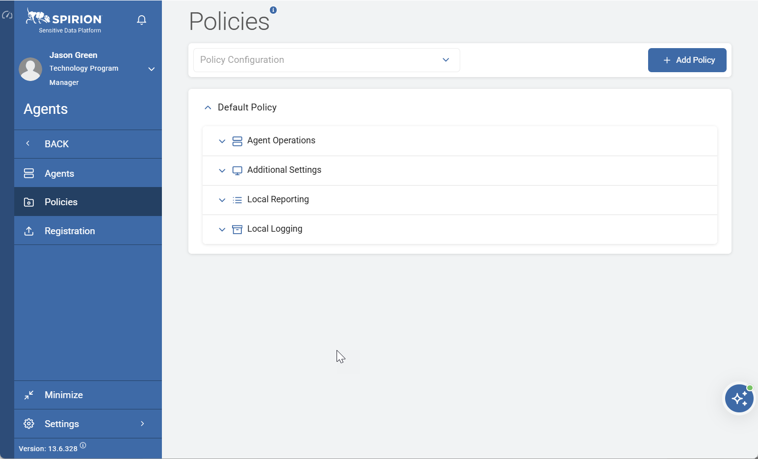 The Policies page is where you manage all your organization's policies. Policies govern how Agents, which are worker processes, scan and evaluate locations for sensitive data such as social security numbers and phone numbers.