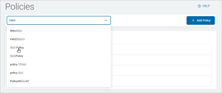 - Select a Policy from the Policy Configuration drop-down list at the top of the page.