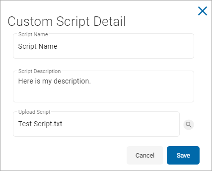 - In the Custom Script Detail pop-up window, fill in the following: