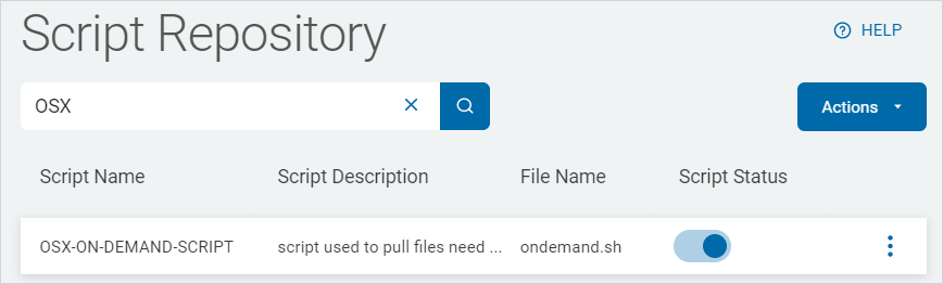 The Script Repository page enables you to manage the scripts that are applied to search results for remediation.